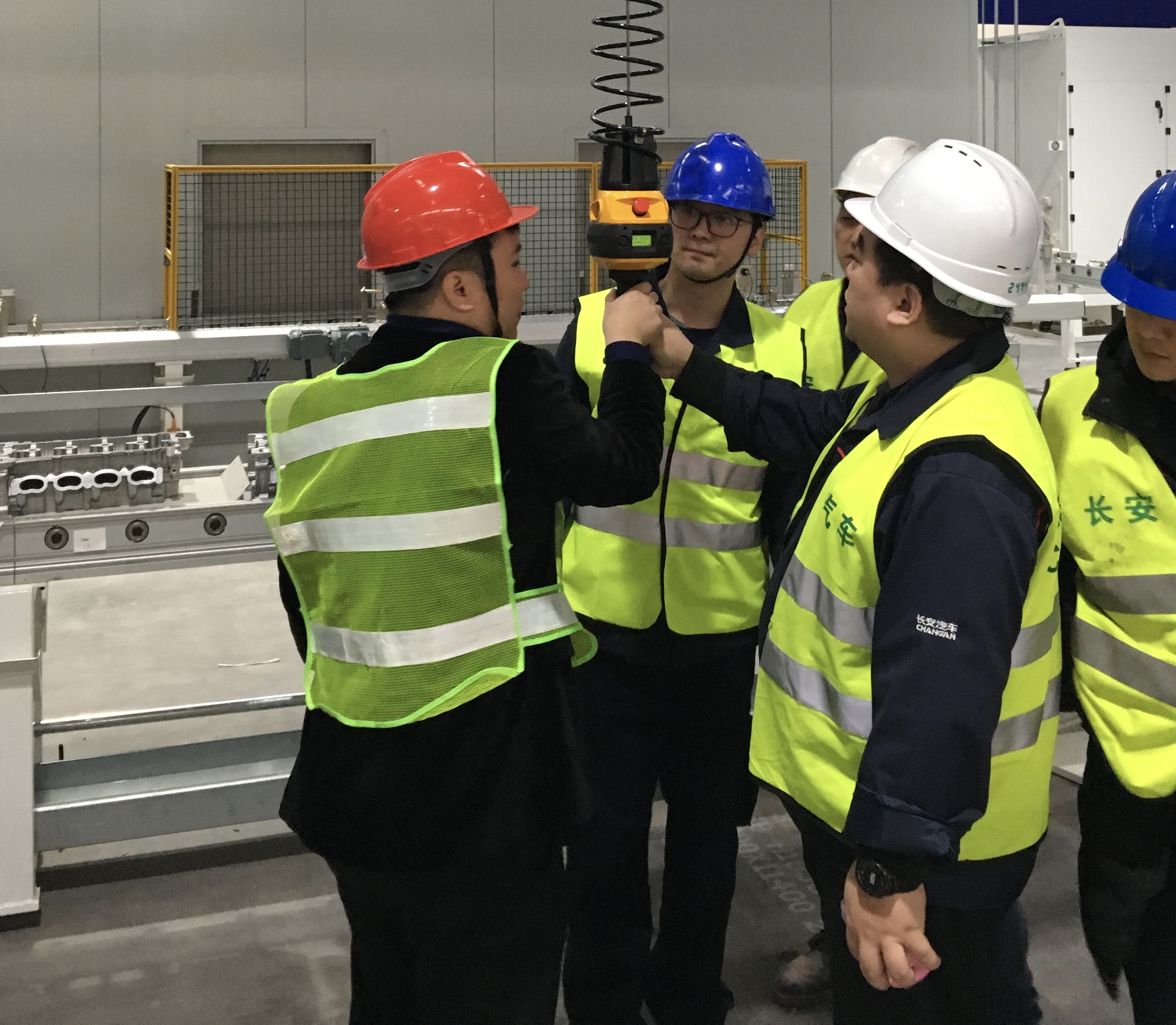 手柄内部配置有光电感应装置,该装置可以识别操作人员是 否到位,除非操作人员发出运动指令,否则该装置不允许设 备运行。